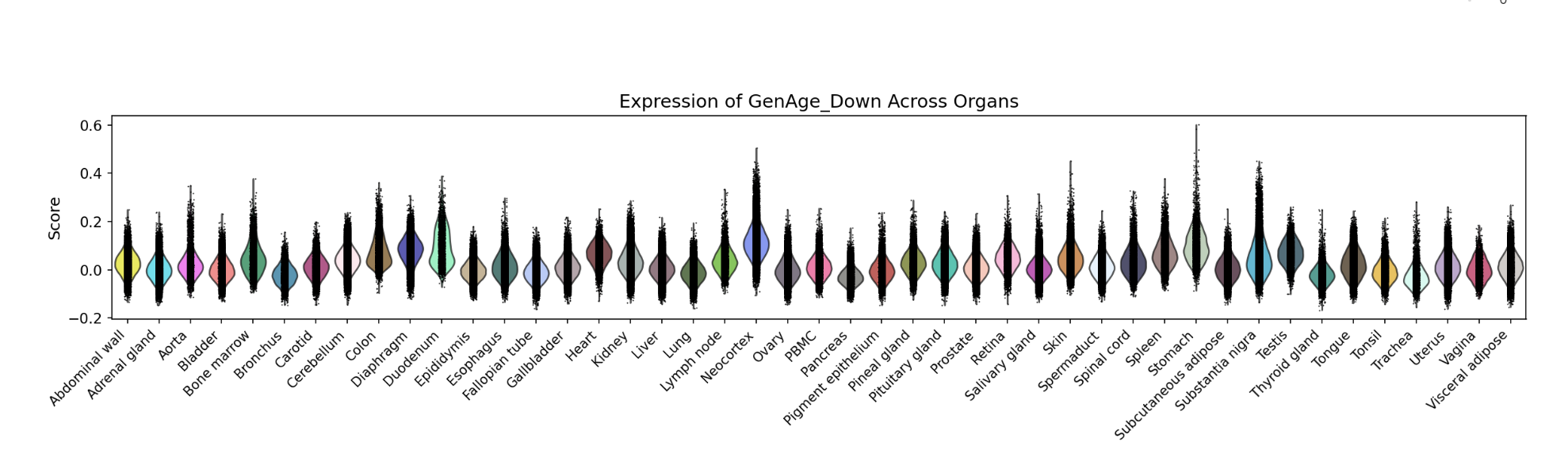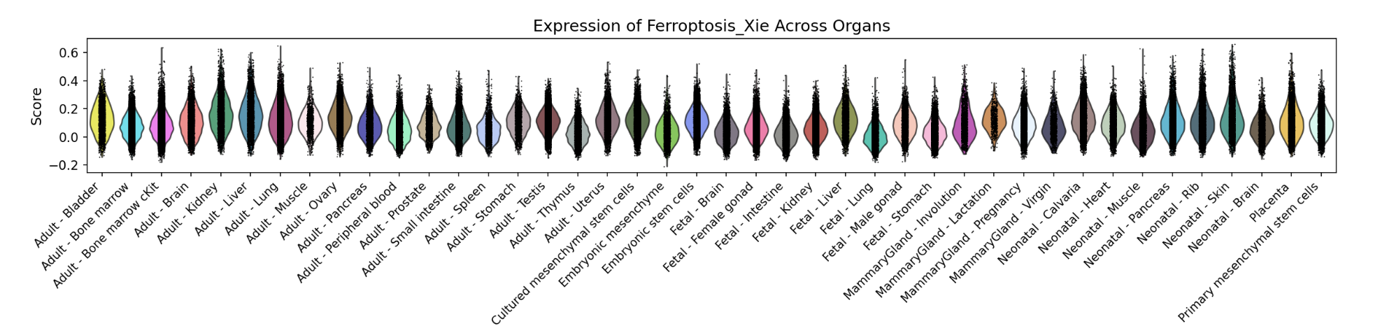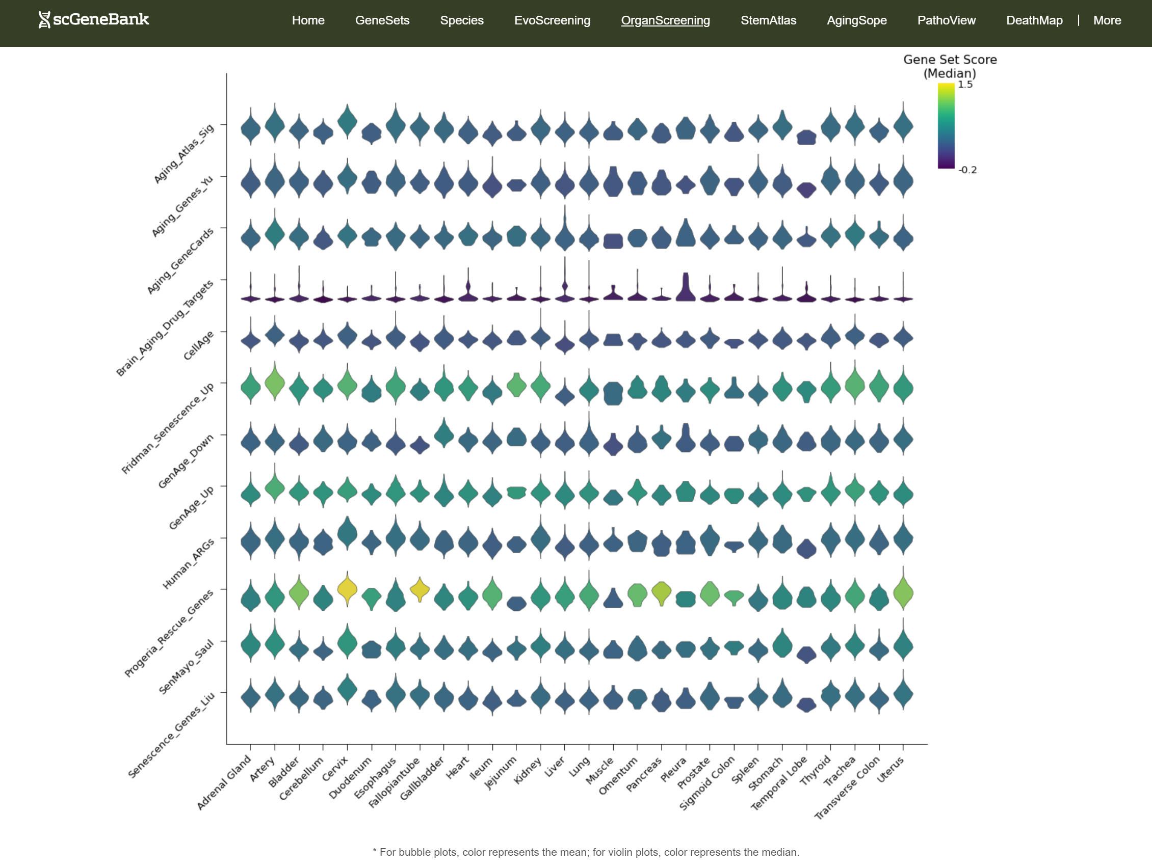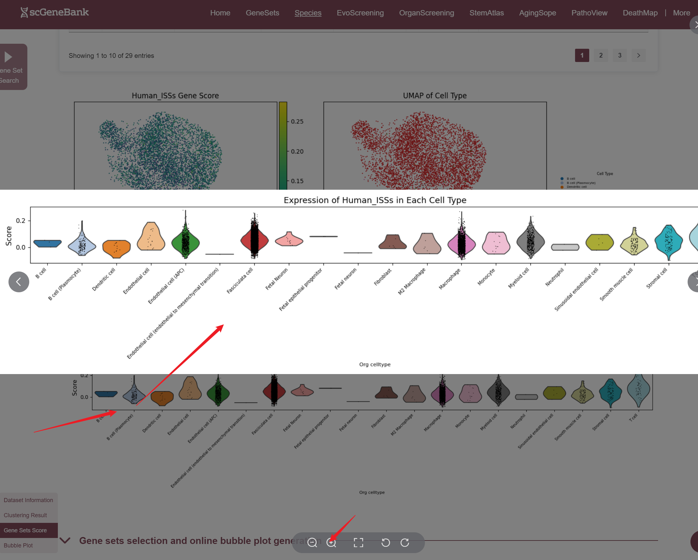 In addition, the webpage also displays a violin plot at the end for further analysis by users. The color of the violin plot represents the median gene set score.