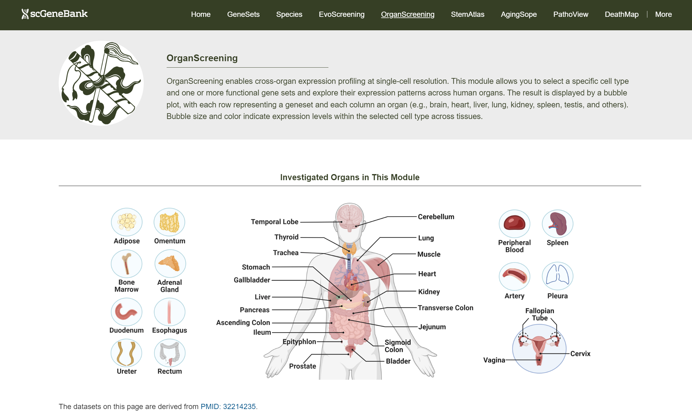 OrganScreening allows users to explore gene set expression across 35 human organs at single-cell resolution.