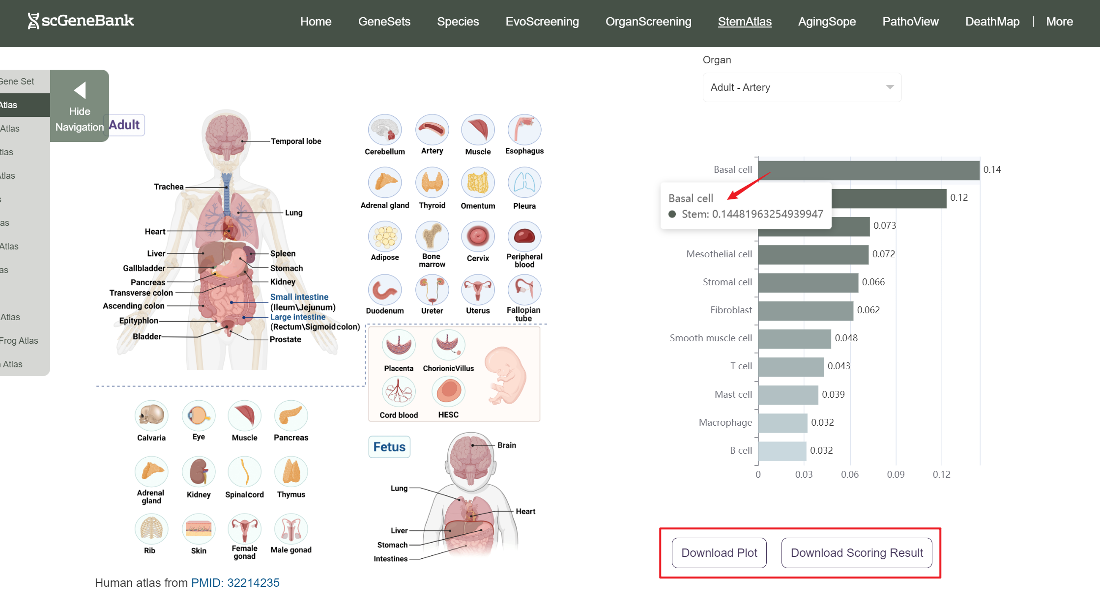 StemAtlas supports gene set scoring for stemness-related signature across whole-body atlas of 12 species at single-cell resolution.